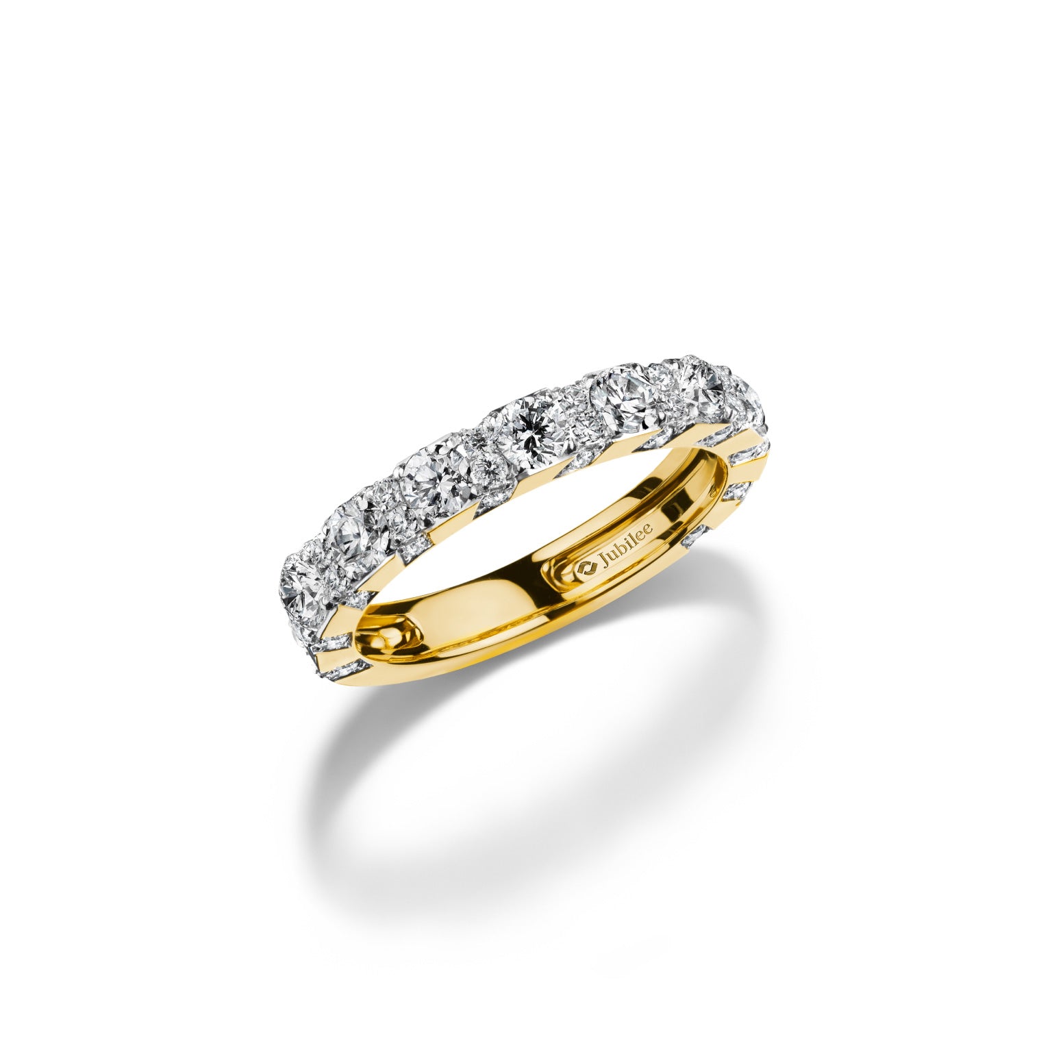 This ring is inspired by the beautiful meaning of everlasting love, featuring Round Brilliant-Cut diamonds that reflect brightness and beauty from every angle. The Full Eternity design conveys a love that never ends. The yellow gold setting adds elegance and warmth to the wearer. This ring is a combination of classic and luxurious that can complete every impression.