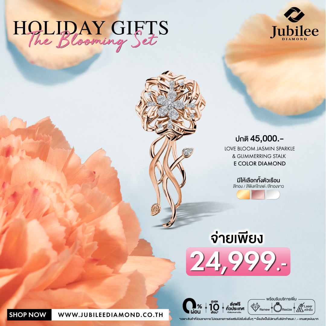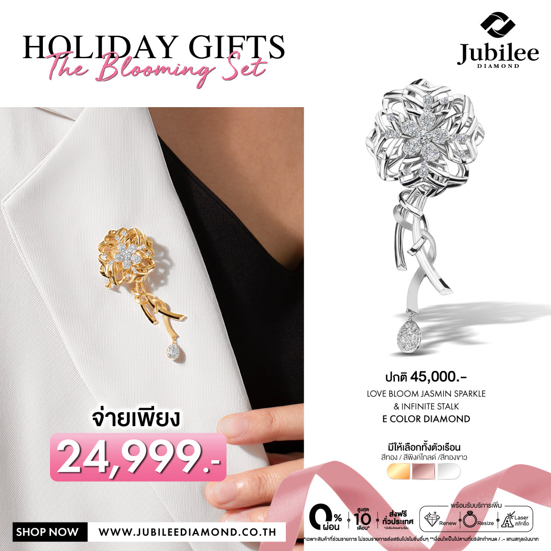 เข็มกลัดเพชร Jasmin Embrace : Love Bloom Jasmine Sparkle & ก้านเข็มกลัดเพชร Infinite Stalk