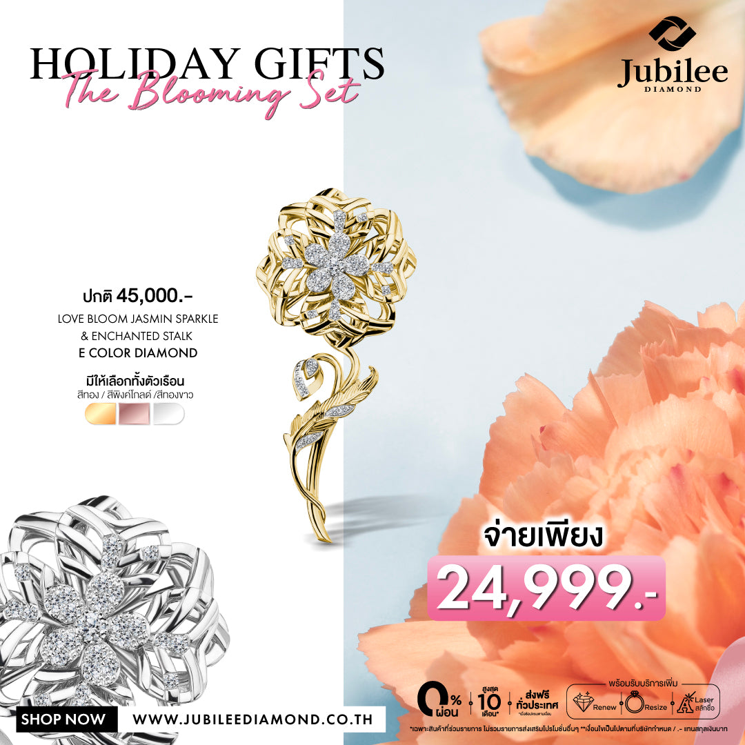 เข็มกลัดเพชร Jasmin Embrace : Love Bloom Jasmine Sparkle & ก้านเข็มกลัดเพชร Glimmering Stalk