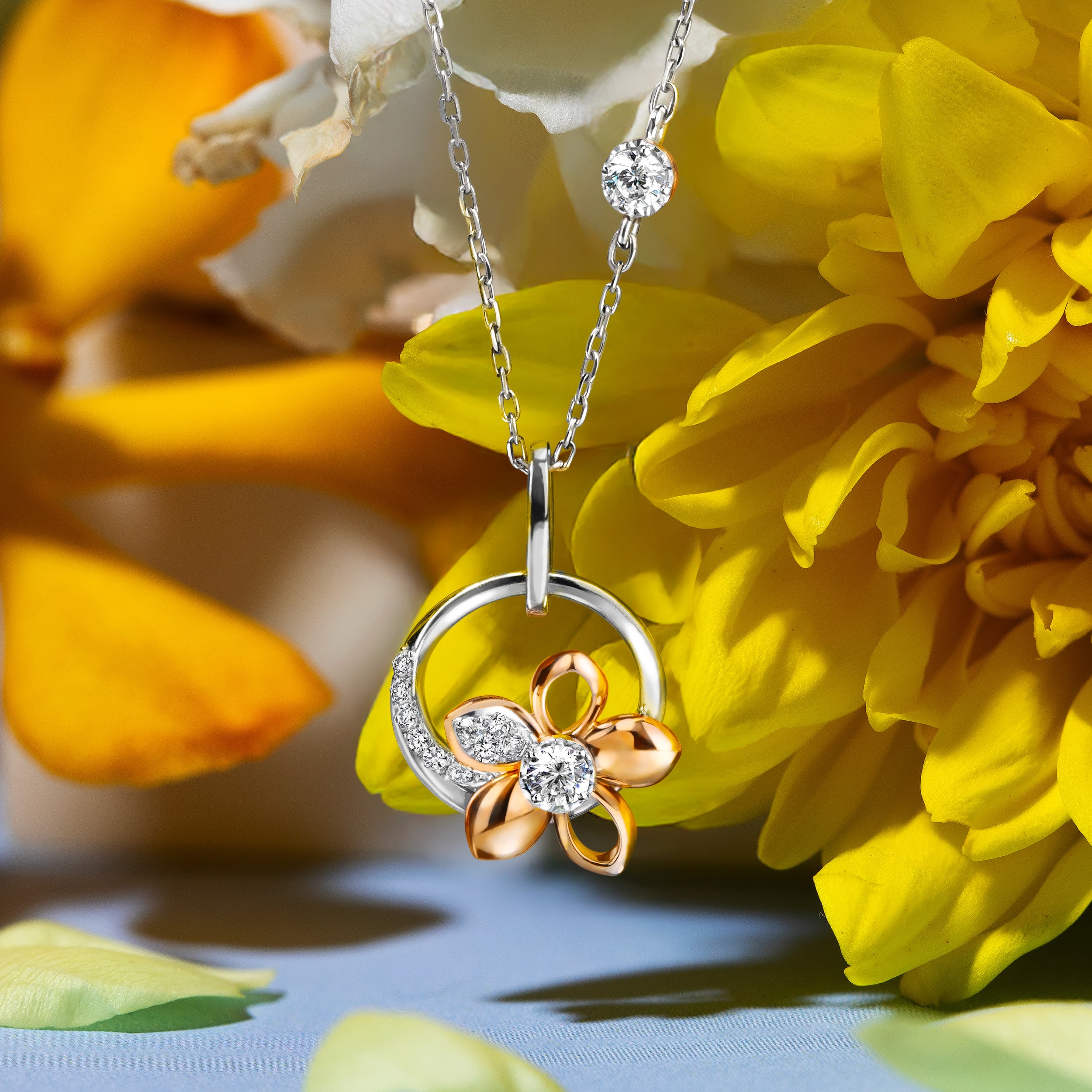 จี้เพชรพร้อมสร้อยคออิตาลี Victorious Bloom Love Petal Pendant with Chain