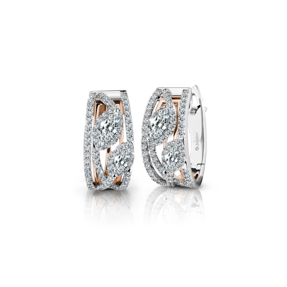 Inspired by the timeless beauty of Marquise-cut diamonds and an innovative design, these earrings are set in a combination of white and rose gold, adding depth and sparkle to the piece. Pavé diamonds are delicately arranged along the edge of the earrings, enhancing their beauty and adding beautiful sparkle. This design is perfect for women who seek a touch of luxury and modernity in their designs.