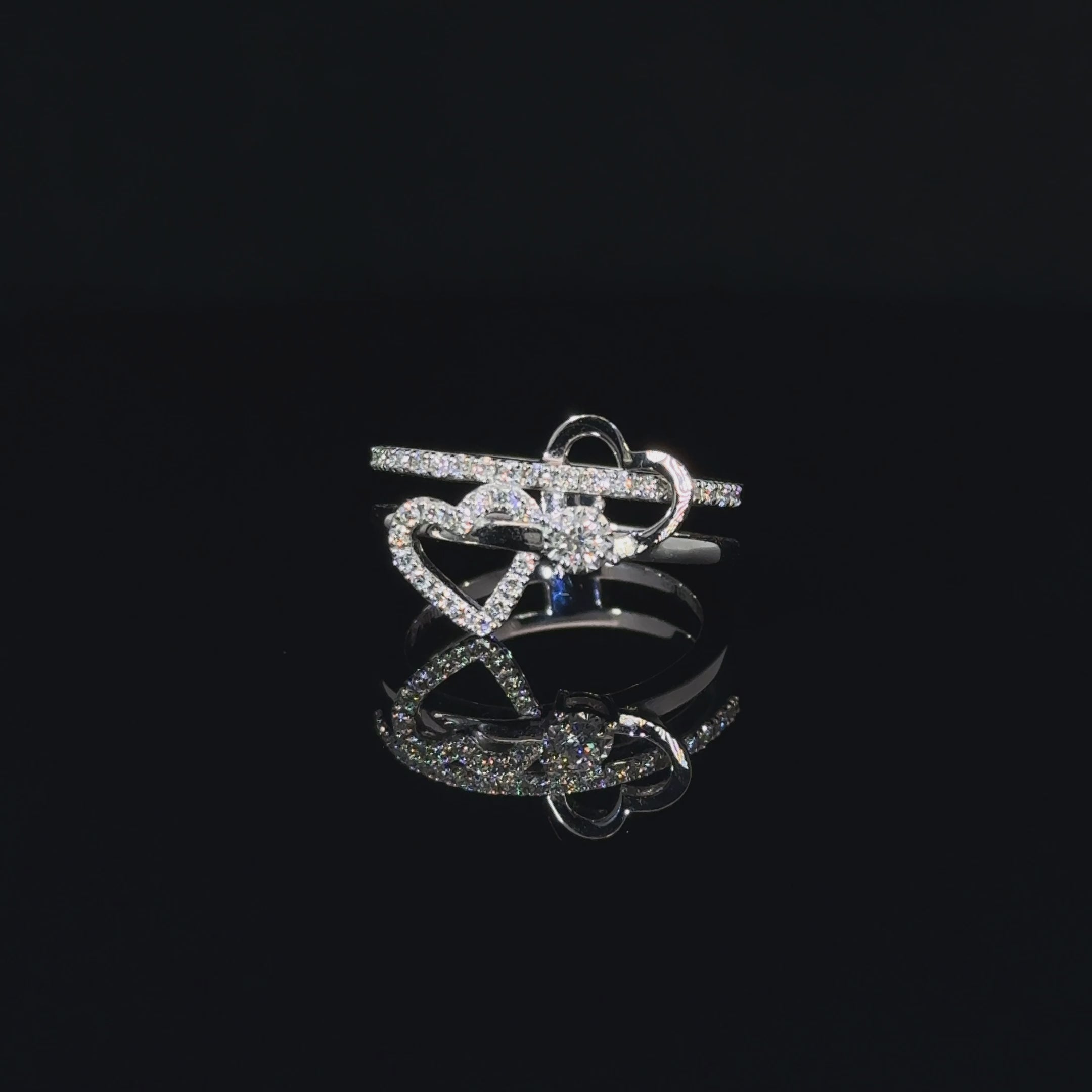Double Heart Design: This ring features a double heart design, symbolizing one's love. It features a center diamond for added sparkle.
