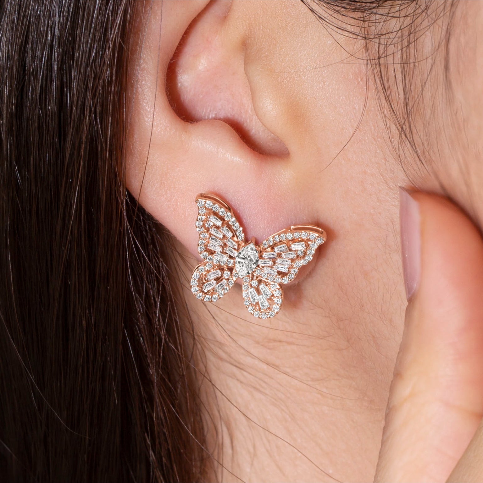 Intricate Diamond Arrangement: Diamonds are delicately arranged in the wings of a butterfly, creating a balance and artistic refinement, making this earring a truly luxurious piece.