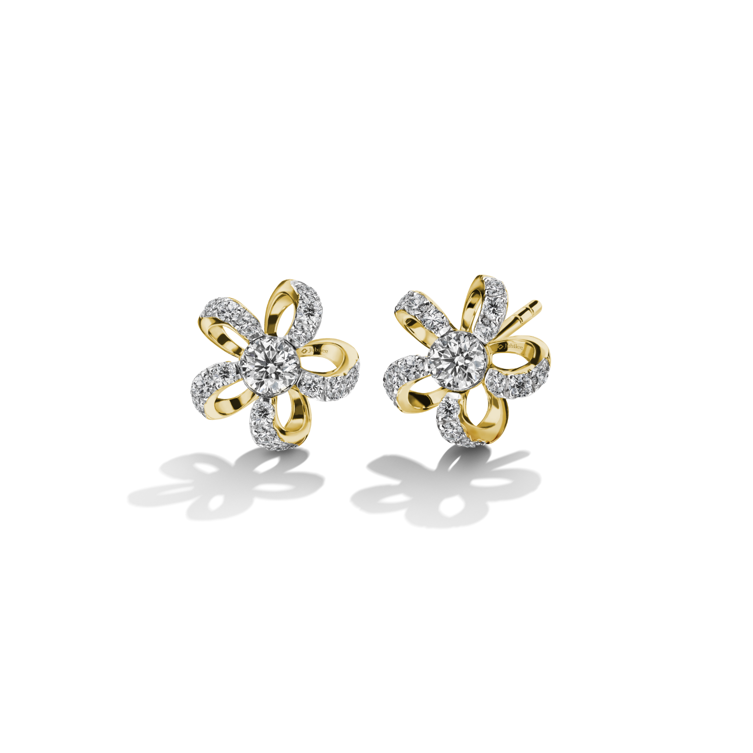Floral Diamond Design: The floral design earrings are adorned with a Round Brilliant-Cut Diamond as the center, making the jewelry look bright and lively.