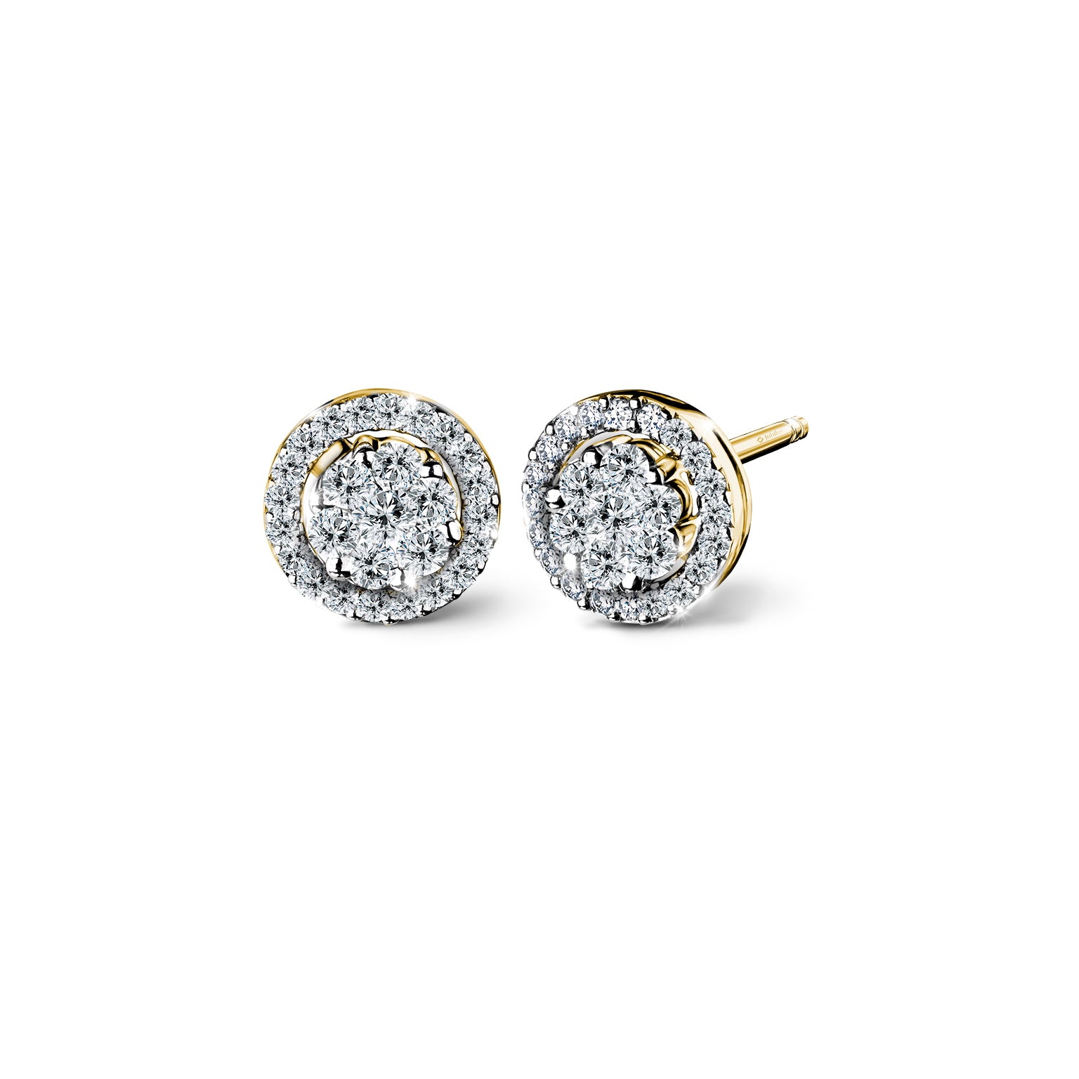 Halo Diamond Earrings: Halo design earrings featuring multiple Round Brilliant-Cut diamonds arranged in a cluster to create a unique sparkle. This diamond arrangement allows each diamond to stand out and shine to its fullest potential.