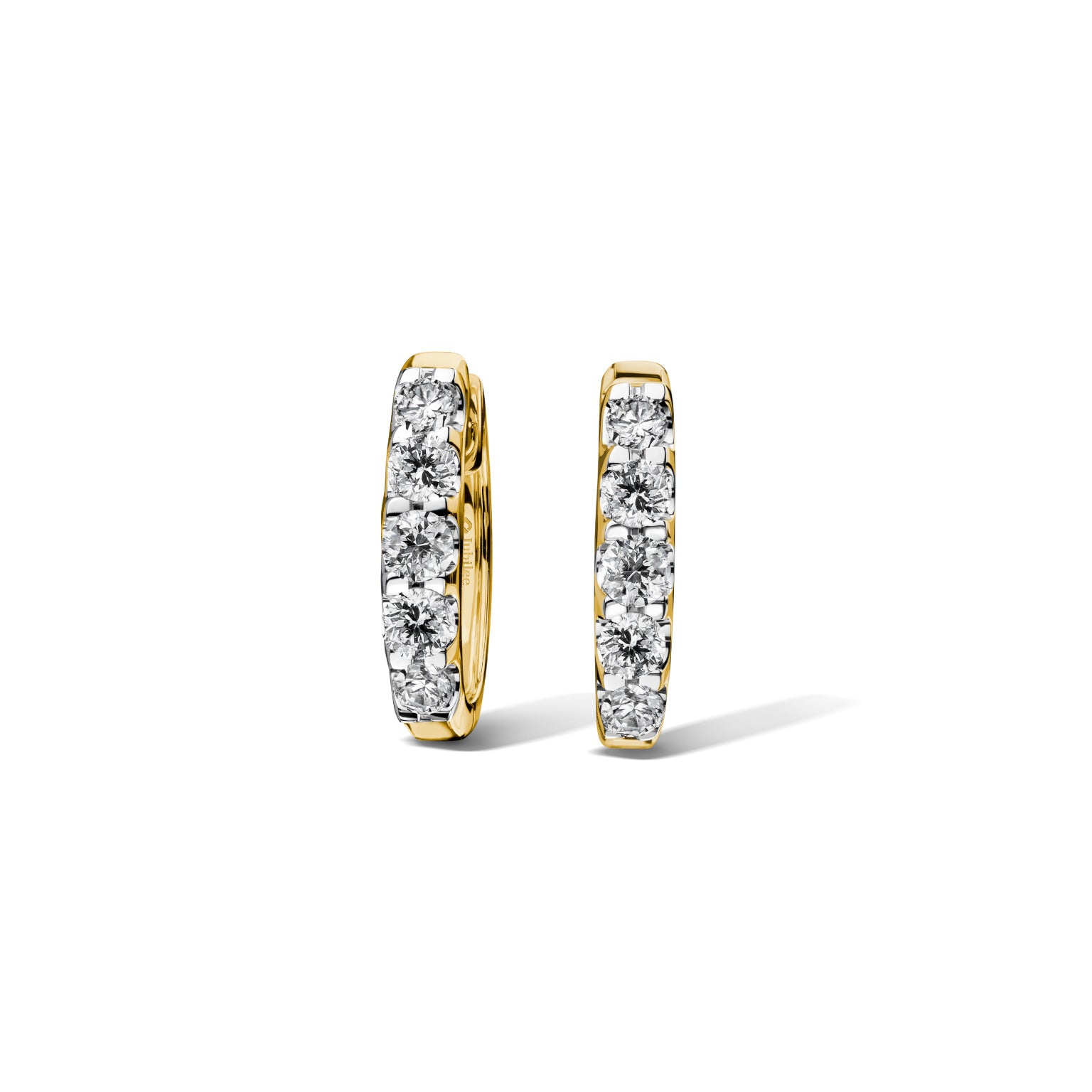 Diamond earrings reflect timeless beauty with delicately arranged round diamonds in elegant straight lines. The setting is designed to bring out the sparkle of the diamonds to shine brightly at every angle, reflecting a simple elegance that perfectly combines modern and classic styles.