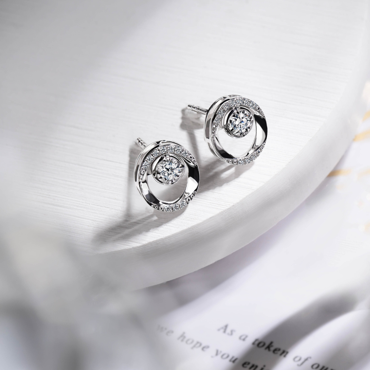 Suspended Center Diamond: The center diamond is set in a suspended position, adding depth and elegance to the design, making this pair of earrings look lively and striking.