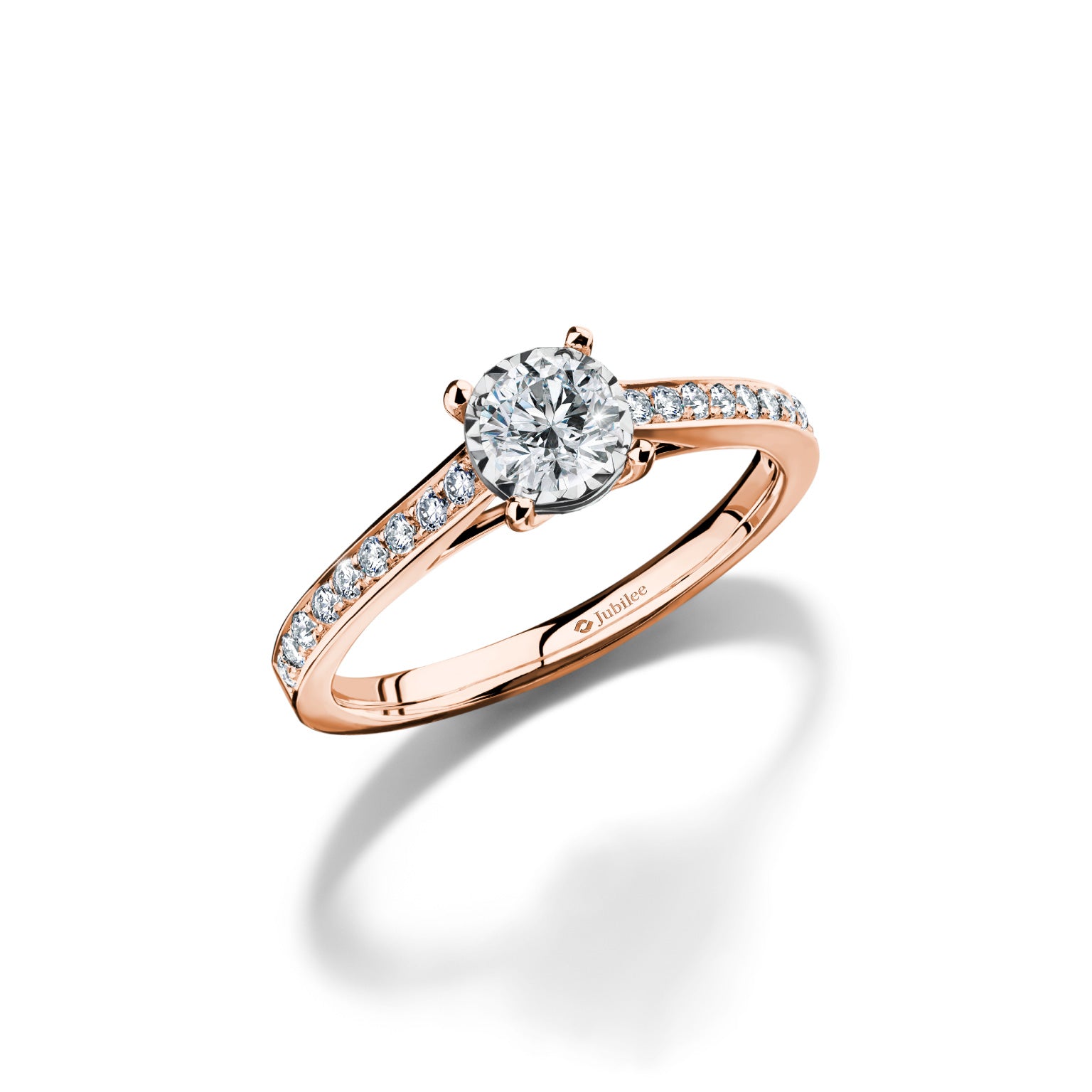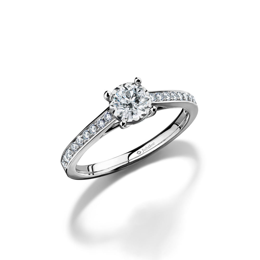 Round Brilliant-Cut Diamond: The round brilliant-cut center diamond sparkles with the most dazzling sparkle, providing a superior beauty.