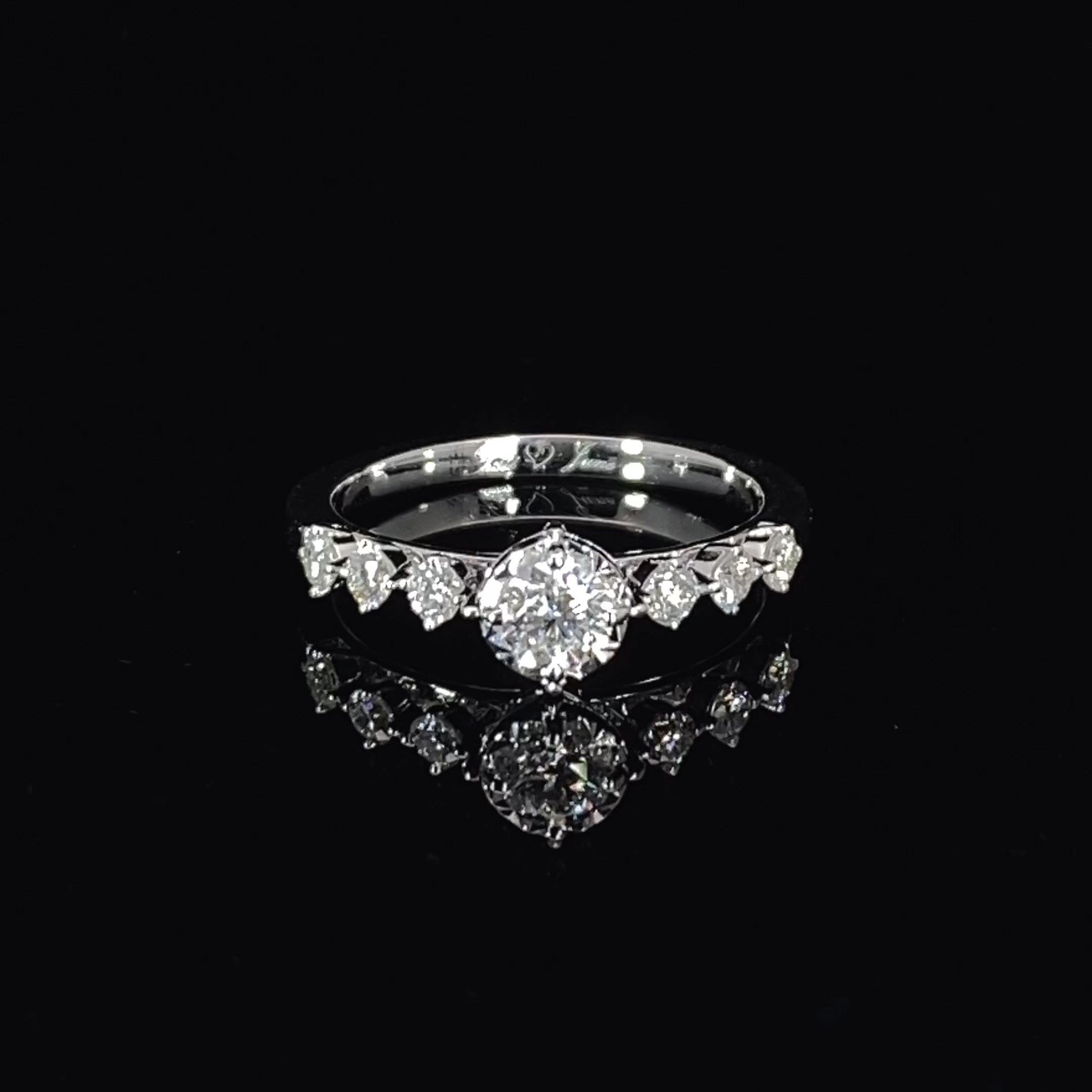 Brilliant-Cut Diamond Center: The ring is decorated with a Round Brilliant-Cut Diamond in the center, creating a brilliant sparkle that reflects from every angle.