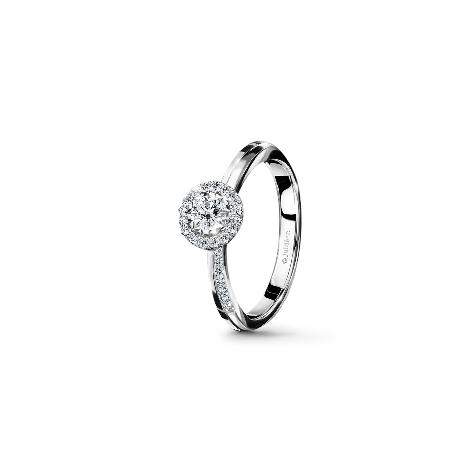 This ring is inspired by the combination of classic and modern. It features a halo design that adds elegance to the main diamond and a softly spaced ring design that adds to its uniqueness. This ring perfectly reflects the beauty of the balance between modern and gentle style.