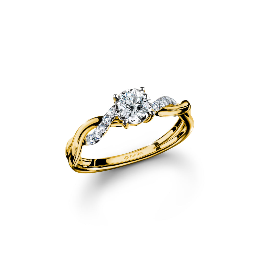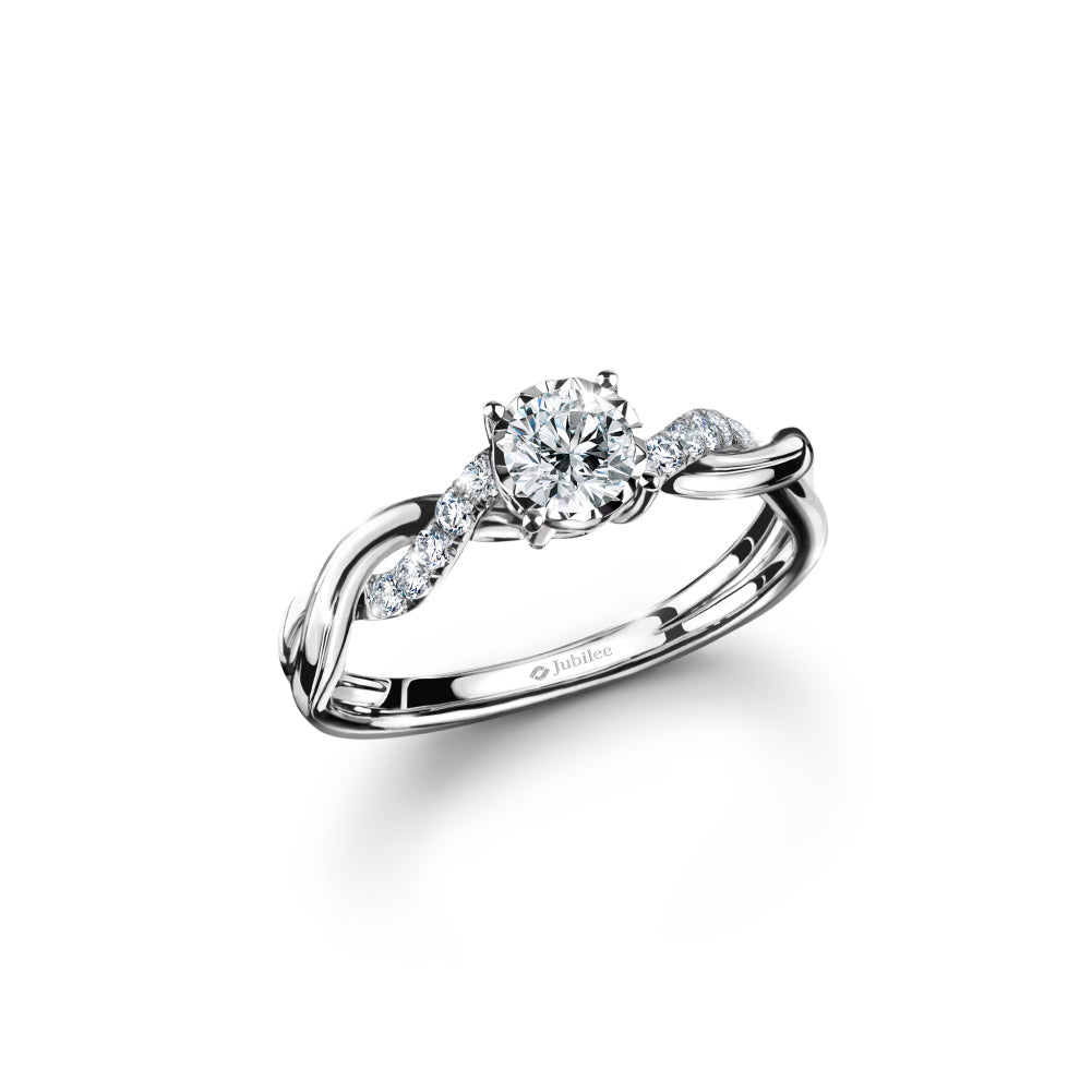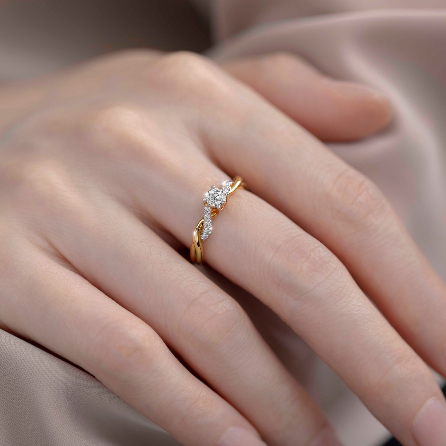 This ring is inspired by the beauty that comes from combining strength and tenderness. The twists of the setting reflect the undying love and bond, while the highlighted Round Brilliant-Cut diamond is designed to radiate maximum sparkle, creating a special feeling every time it is worn. The smaller diamonds set on the setting add elegance and sparkle with every movement.