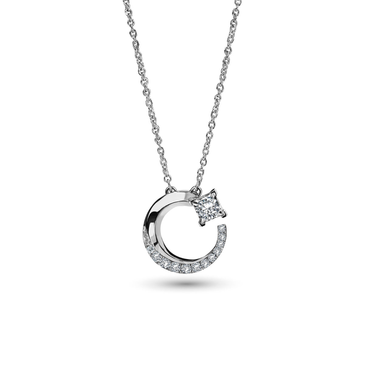 จี้เพชรพร้อมสร้อยคออิตาลี Voyage of Heart Moon Pendant with Chain