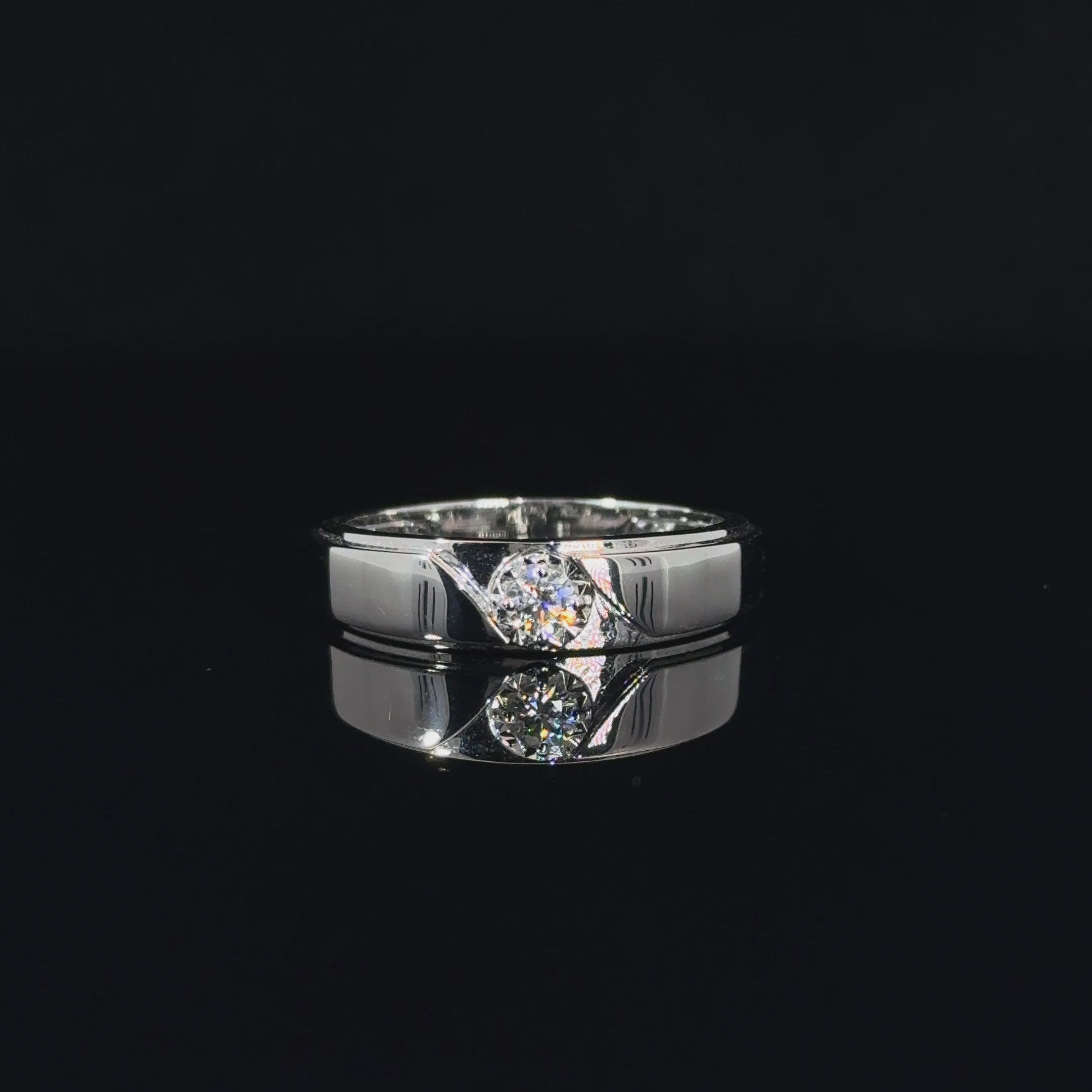 Single Round Brilliant-Cut Diamond: ตัวเรือนแหวนประดับด้วยเพชรเจียระไนแบบ Round Brilliant-Cut หนึ่งเม็ดขนาดใหญ่ ให้ความสว่างใสและประกายที่งดงามในทุกมุมมอง