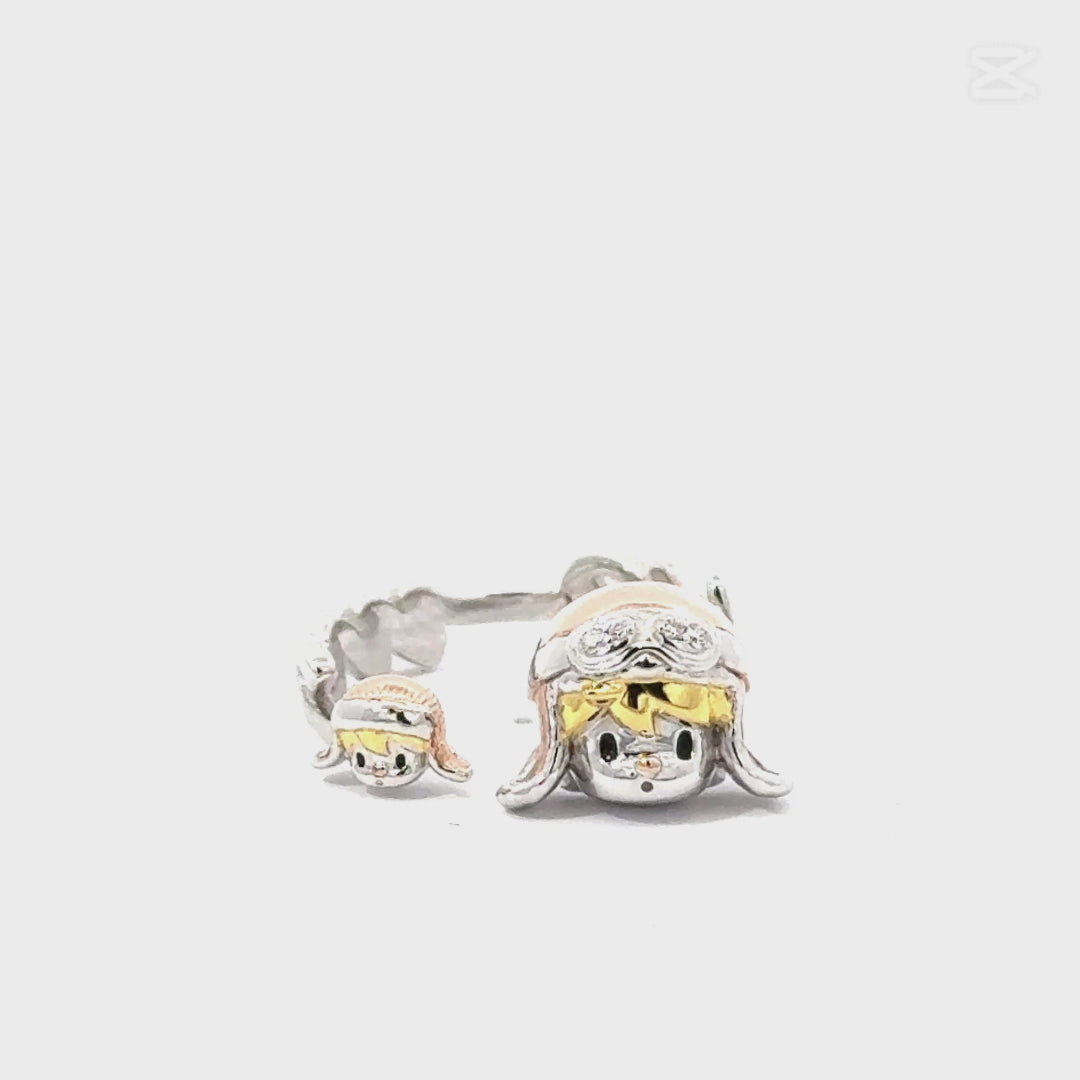 แหวน Hug Me วงนี้พา Sweet Bean และ Mini Sweet Bean ในชุดนักบินแสนน่ารักจากคอลเลกชัน When I’m Ambitious มาอยู่บนปลายนิ้วของคุณ แหวนวงนี้เป็นเพื่อนคู่ใจที่เข้ากับเครื่องประดับอื่น ๆ ในคอลเลกชันได้อย่างลงตัว หรือจะใส่แบบมิกซ์แอนด์แมตช์ก็สนุกไม่แพ้กัน ตัวแหวนออกแบบจากตัวอักษร Hug Me โอบรอบนิ้วอย่างสวยงาม พร้อมหัวคู่ของ Sweet Bean และ Mini Sweet Bean