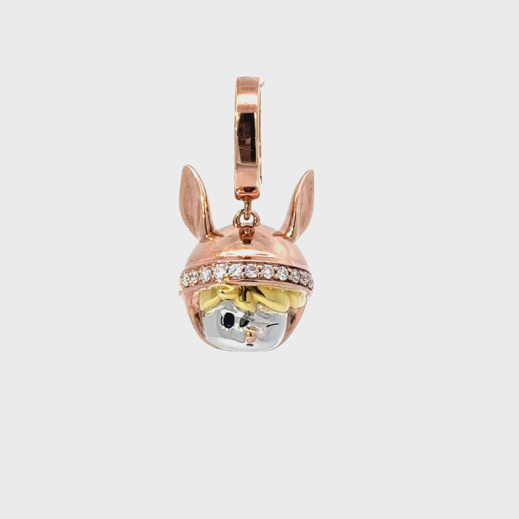 charm หัวน้อง Sweet Bean ชิ้นนี้มาพร้อมกับน้อง Sweet Bean ในชุดจิงโจ้สุดน่ารักจากคอลเลกชัน When I Try To Be Good ผมม้าสี yellow gold อันเป็นเอกลักษณ์ของน้องช่วยเพิ่มความโดดเด่นและตัดกับดีไซน์ที่เหลือได้อย่างลงตัว ให้ความรู้สึกหรูหราแต่ยังคงความน่ารักไว้อย่างพอดี บริเวณด้านบนศีรษะประดับด้วยเพชรแท้เรียงเป็นแถว เพิ่มเสน่ห์สุดหรูให้กับ charm สี pink gold ชิ้นนี้ได้อย่างสมบูรณ์แบบ