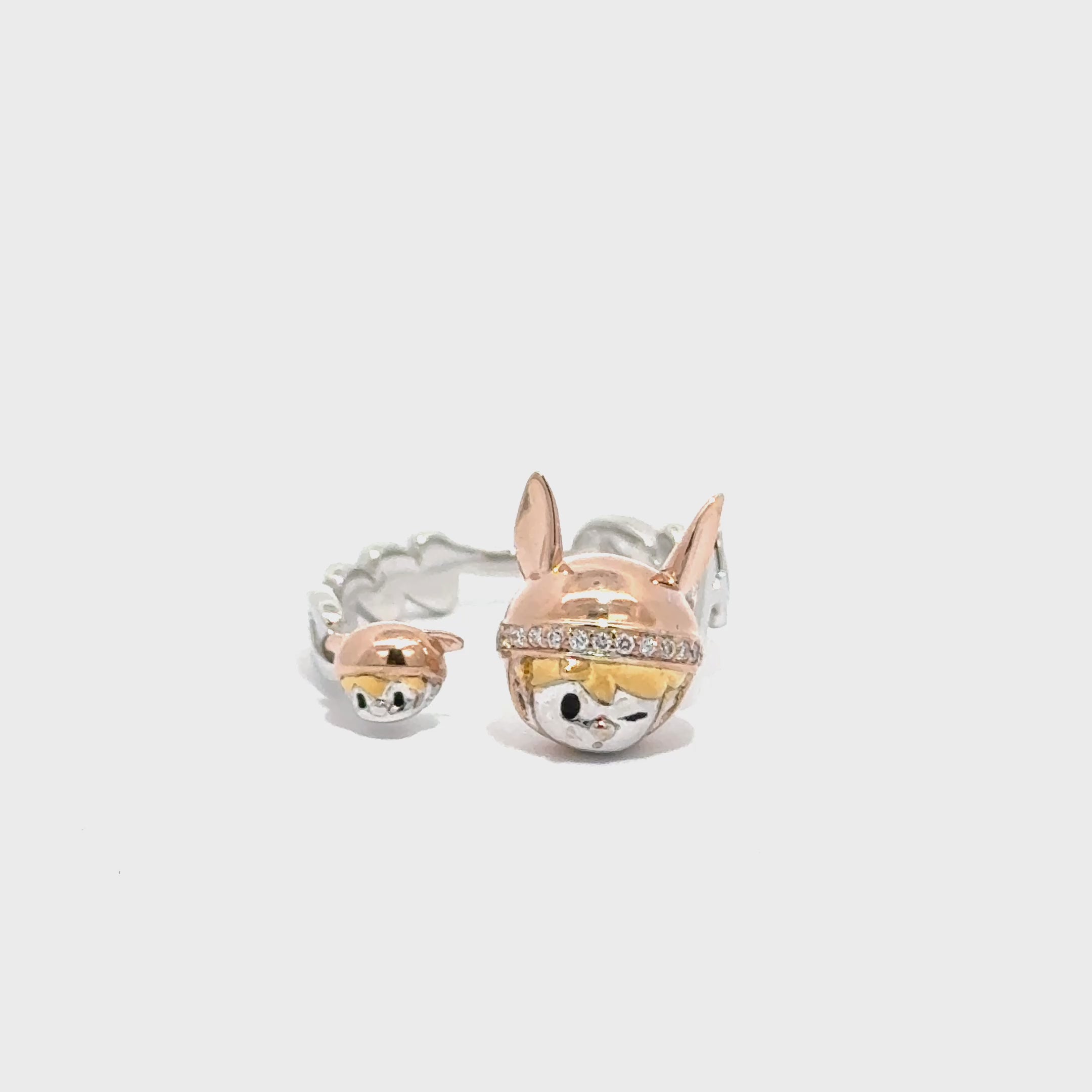 ผมม้าสี yellow gold สุดน่ารักของ Sweet Bean ทำให้ทรงผมอันเป็นเอกลักษณ์ดูโดดเด่นยิ่งขึ้น ยิ่งไปกว่านั้น บนศีรษะยังประดับด้วยคลัสเตอร์เพชรที่เปล่งประกาย เพิ่มสัมผัสหรูหราและเจิดจรัส แหวนดีไซน์หัวคู่แบบนี้จะทำให้ Sweet Bean และ Mini Sweet Bean อยู่ใกล้คุณเสมอ พร้อมเติมความน่ารักและสไตล์ในทุกวันของคุณ